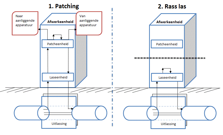 Fysiek kan het echter wel zijn dat de laseenheid en de patcheenheid gecombineerd worden.